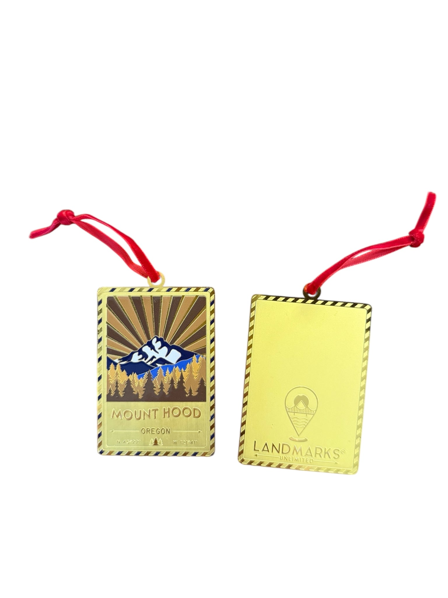 A beautifully crafted metal postcard ornament showcasing the iconic Mount Hood of Oregon. Designed with fine cutout detailing and a shimmering finish, this ornament captures the majestic silhouette of Oregon’s tallest peak. The postcard-style design highlights Mount Hood’s timeless beauty, making it both a keepsake and a decorative treasure. Lightweight yet durable, it comes with a ribbon for easy hanging, perfect for adorning holiday trees, displaying year-round, or gifting to Oregon lovers and adventurers alike.