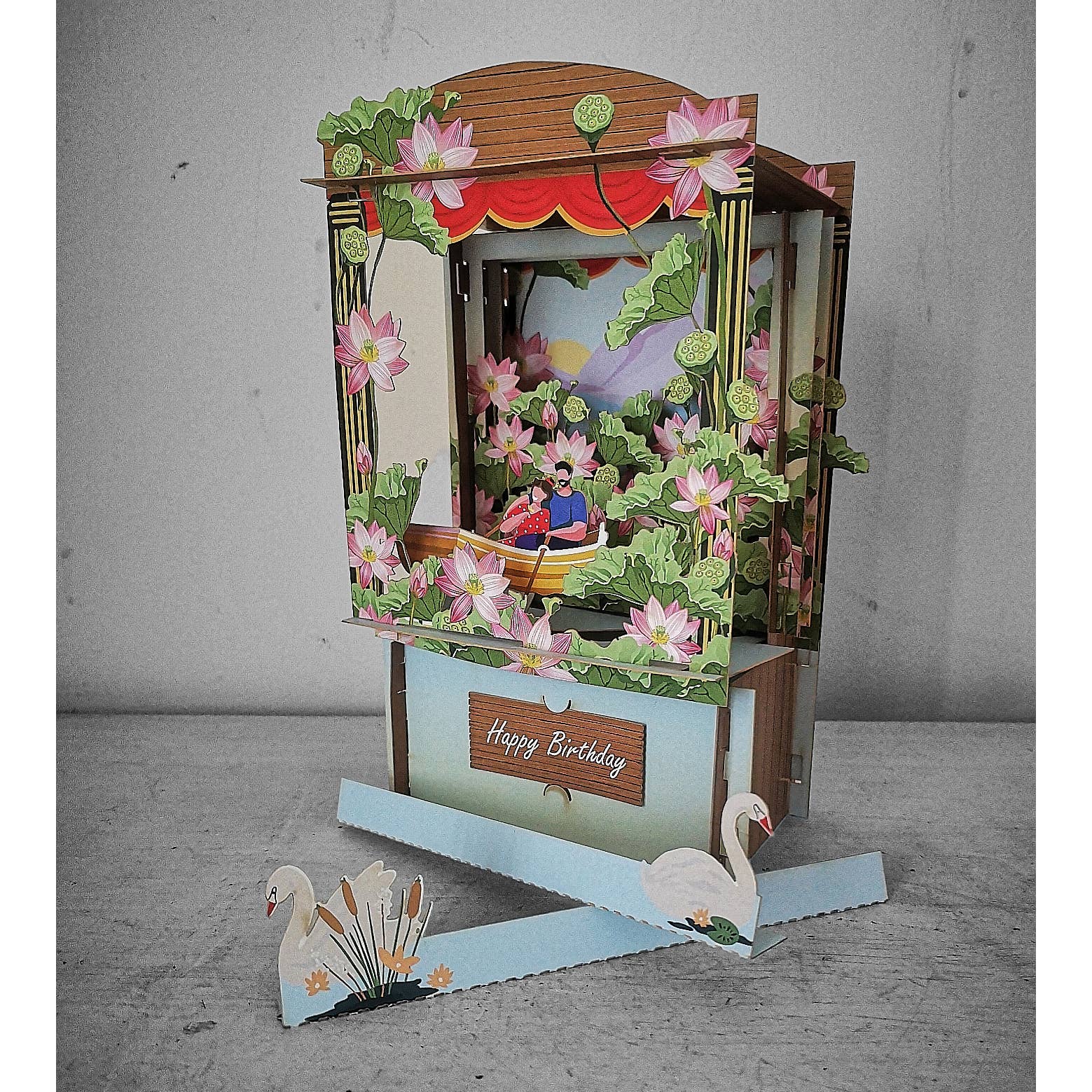 Featuring a miniature paper theater stage that pops up when the card is opened, revealing a pre-designed scene with two characters.The characters are designed to be moveable, allowing the recipient to play with them and create their own mini stories. Card size: 19.5 X 24.5CM / 100% plastic free outer packaging